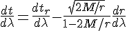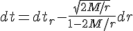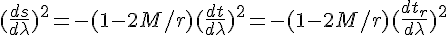 (pas de complications car, dans la métrique de Schwarzschild, il n'y a ni termes dt dr, ni termes dt dthêta, ni termes dt dphi)