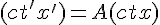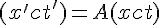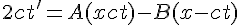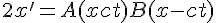 Si R'' ( t ; - wt ) dans R , R'' (t' , - w't' ) dans R'; O' ( t ; vt ) dans R, alors il existe un coefficient A tel que :avec x = = -wt et x' = -w't'