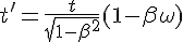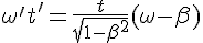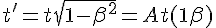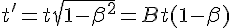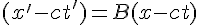 Si R'' ( t ; wt ) dans R , R'' (t' , w't' ) dans R'; O' ( t ; vt ) dans R, alors il existe un coefficient B tel que :avec x = wt et x' = w't'
