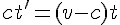 Si O' a pour coordonnées ( t ; vt ) dans R, alors du fait de la constance de la vitesse de la lumière dans les référientiels en MRU, ceci implique que :![]()