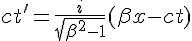 Si O' a pour coordonnées ( t ; -vt ) dans R, alors du fait de la constance de la vitesse de la lumière dans les référientiels en MRU, ceci implique que :![]()