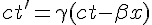 Du fait de la constance de la lumière par rapport à tout référentiel en MRU, soit un référentiel R' en MRU à v < c par rapport à un référentiel R. Soit un photon se déplaçant dans le sens positif des x, je peux écrire: :