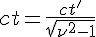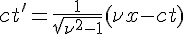 Si O' a pour coordonnées ( t ; -vt ) dans R, alors du fait de la constance de la vitesse de la lumière dans les référientiels en MRU, ceci implique que :