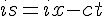 une ligne d'univers s d'un continum espace-temps 1D + 1 est défini dans R(t ; x) par :