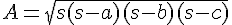j'aime bien la formule de Heron: si un triangle a pour côtés a,b,c et si s est le demi-périmètre (s=(a+b+c)/2) alors l'aire A du triangle est: