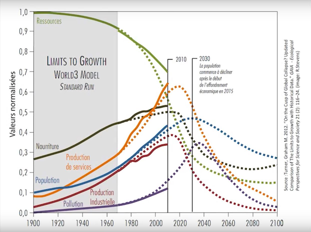 Ou encore l’équipe Meadows du MIT et son rapport « limit to growth » publié en 1972 dont les courbes furent actualisée en 2012.