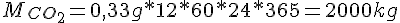 On multiplie par 12 (pour avoir la quantité par minute), et par 60*24*365 :