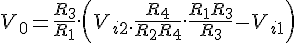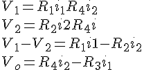 pour simplifier je note i1 le courant traversant R1 et R3 ,i2 le courant traversant R2 et R4,V1 la tension Vi1 et V2 la tension Vi2