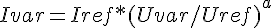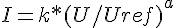 Je note Uvar la surtension aux bornes de la varistance. Je sais qu'elle répond à une loi U(I) suivante :