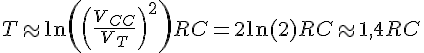 Pour une porte normale avec un seuil de basculement à VCC/2 environ, il sont égaux approximativement à :Le calcul de la période donne alors :