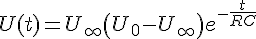 U0 correspond à la tension aux bornes de C à l'instant t=0. Et U∞ correspond à la tension appliquée au circuit RC, qu'on retrouverait aux bornes de C après un temps infini.