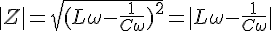 (attention : à guche du signe égal, autour de Z, la fonction |.| désigne le module ( Z est un complexe ) alors que |.| désigne la fonction valeur absolue à droite (Lω - 1/(Cω) est réel).