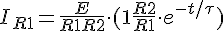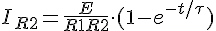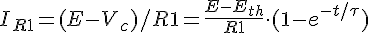 iR1 = (E-Uc)/R1, => iR1 = [E - E(1- exp(-t/R1.C))]/R1 = E/R1.[(1- (1- exp(-t/R1C))] = E/R1.[exp(-t/R1C)] et