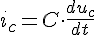 , avec ic et uc le courant et la tension aux bornes du condensateur, qui se réécrit en supposant un courant constant :