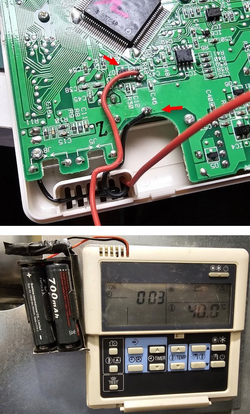 Soit avec une pile bouton rechargeable à la place du supercondensateur ou en supplément soudé comme avec le système des piles