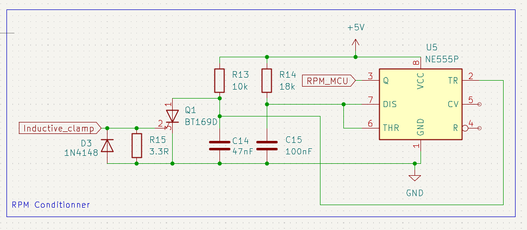 J'ai choisi de partir sur un tyristor car il me semble qu'ils sont piloté en intensité plutot qu'en tension et un NE555 pour filtrer les parasites. Mais impossible d'avoir un signal même en sortie du tyristor.