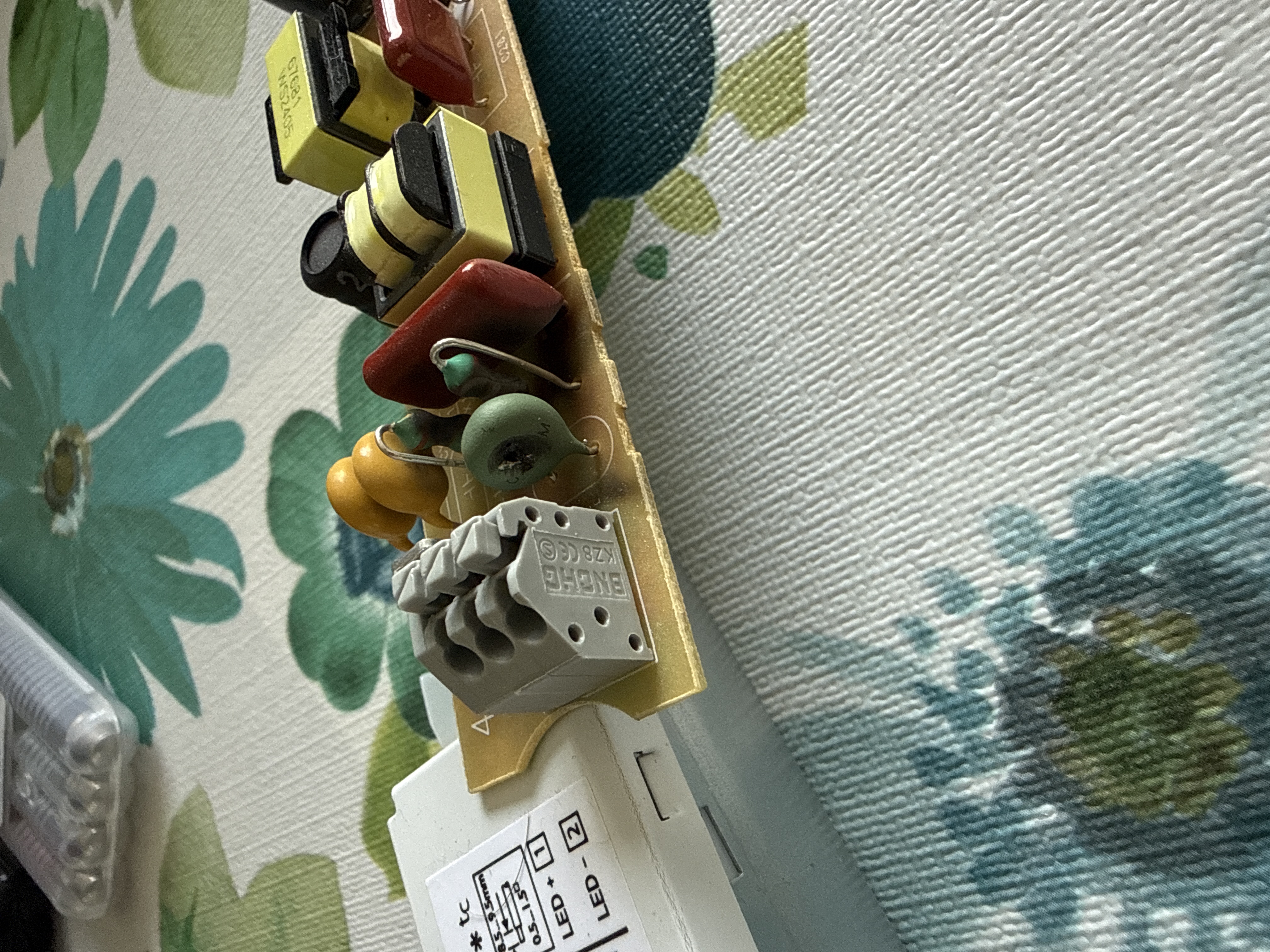 Au démontage de la carte driver led, je vois la GMOV ou varistance (je ne me rappelle plus bien) ‘explosée’.