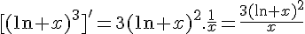 En fait en recopiant, j'ai sauté une ligne en cours de route ; c'est-à-dire que le calcul représente la dérivé de(lnx)^3 j'ai pas compris ce que tu as fait, mais c'est faux...![]()