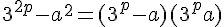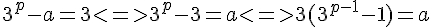 Que dire de 3^p - a par rapport 3^p + a ?c)