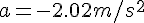 3. L'accélération est(en fait un delta majuscule serait mieux comme c'est l'accélération moyenne, mais j'arrive pas à trouver comment faire, idem pour les fractions...) ce qui donne