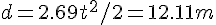 4. En dérivant deux fois comme au début (sans oublier qu'il y a des conditions initiales), j'obtiensla distance parcourue jusqu'à l'arrêt.
