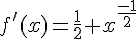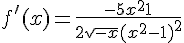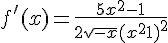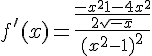 f'(x)= -3x² + 1 / 2racine carré(x) + (x²-1)² , cependant, je n'en suis absolument pas certain. De ce fait, j'attends la correction avisée de Martini_bird avec impatience!