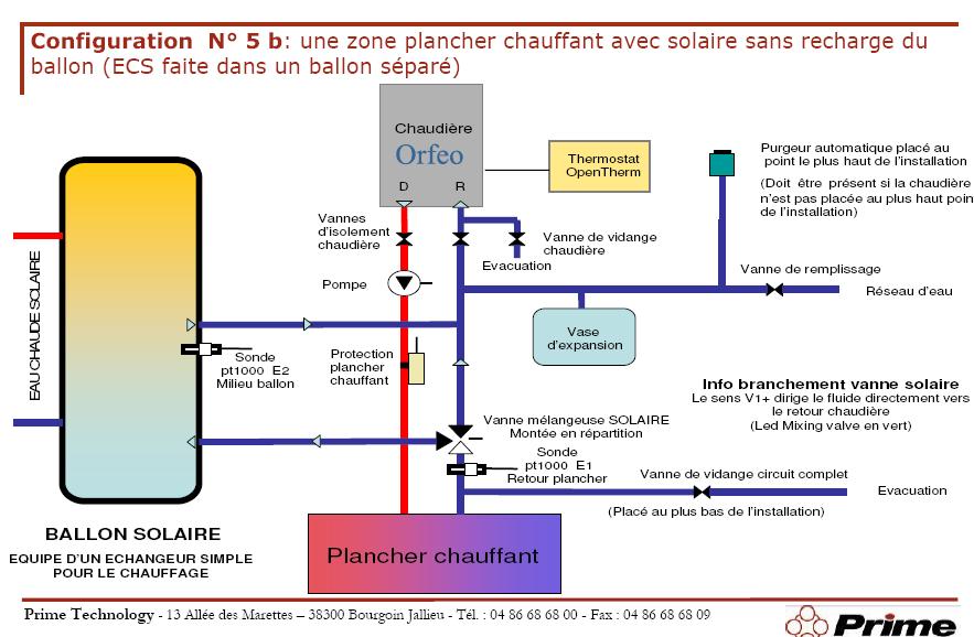 Ballon de 800l + 200 l en bain marie pour l'ECS, un seul echangeur(celui du solaire) et brancher a une chaudiere electrique pour l'appoint.Couplé a du plancher chauffant. Comment proceder? Je ne voudrais pas perturber le solaire la journée....