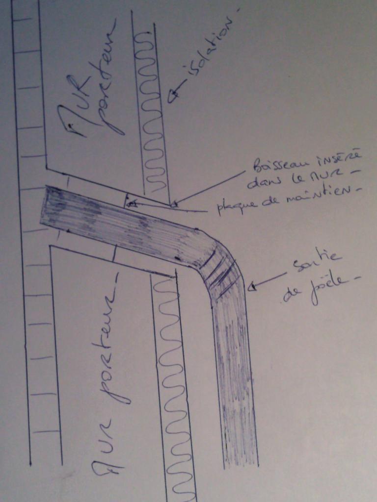 bonjour, oui le boisseau vient à ras du placo qui est en fait du fermacell, le tout est entouré de béton que je ne l'ai pas représenter sur le schéma mais entre le boisseau et l'isolant il y a environ 20 cm de béton.