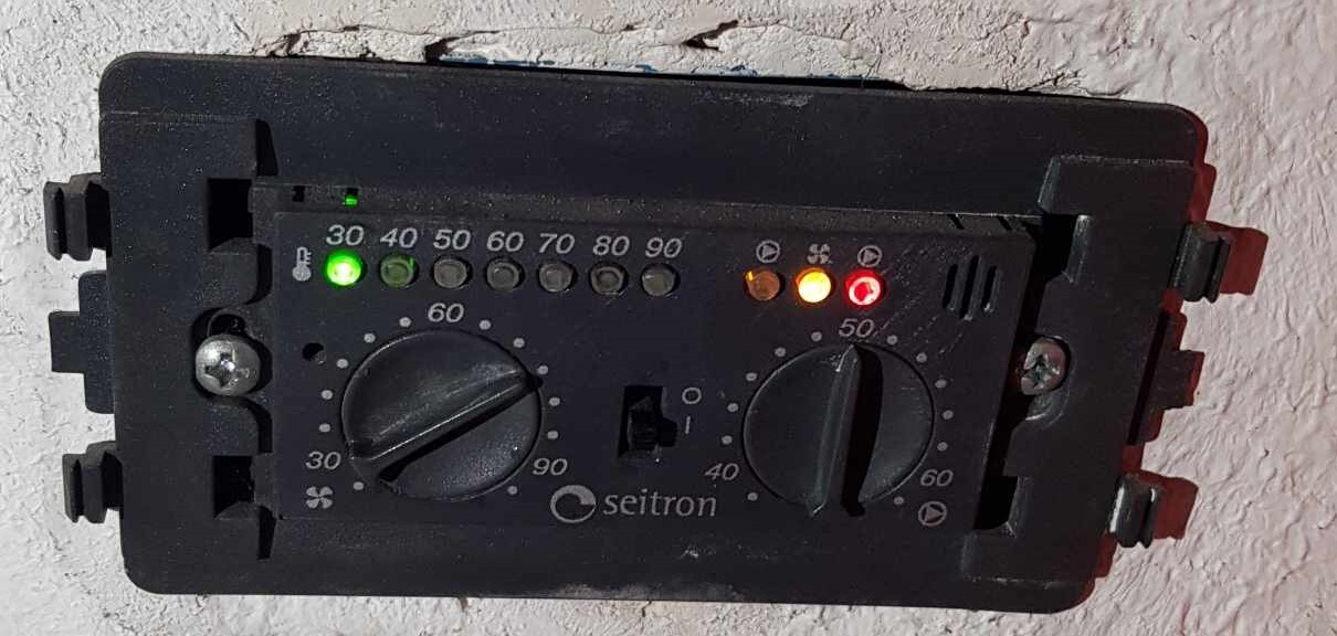 J'ai allumé le feu dans l'insert pendant 30 minutes et le thermostat (Seitron) s'est mis à sonner pour indiquer une surchauffe (à partir de 90°C) avec les deux dernières LED rouges allumées.