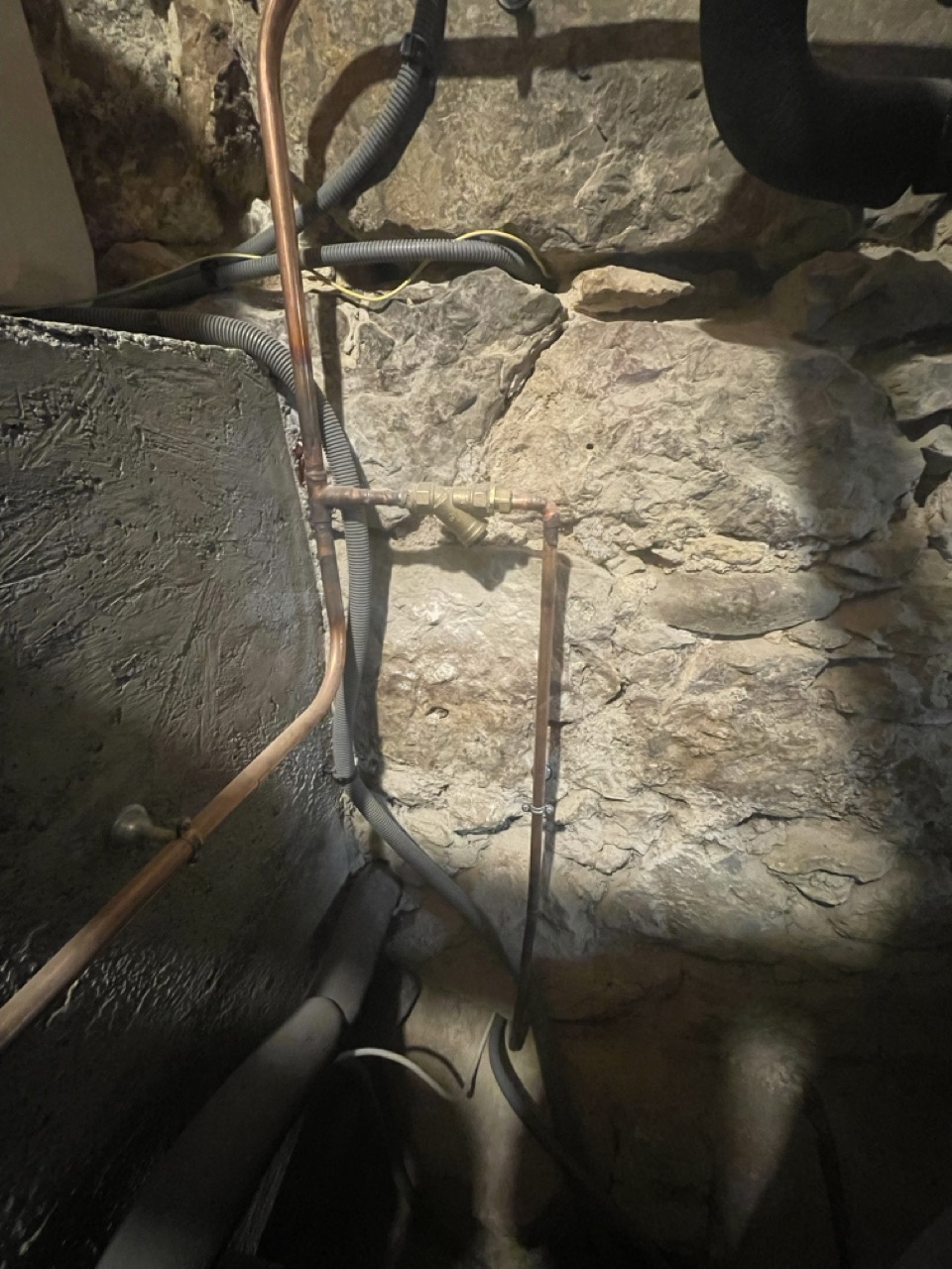 Une photo du tube qui entre en bas de la cuisinière pour confirmer, mais le circulateur ne semble pas là.