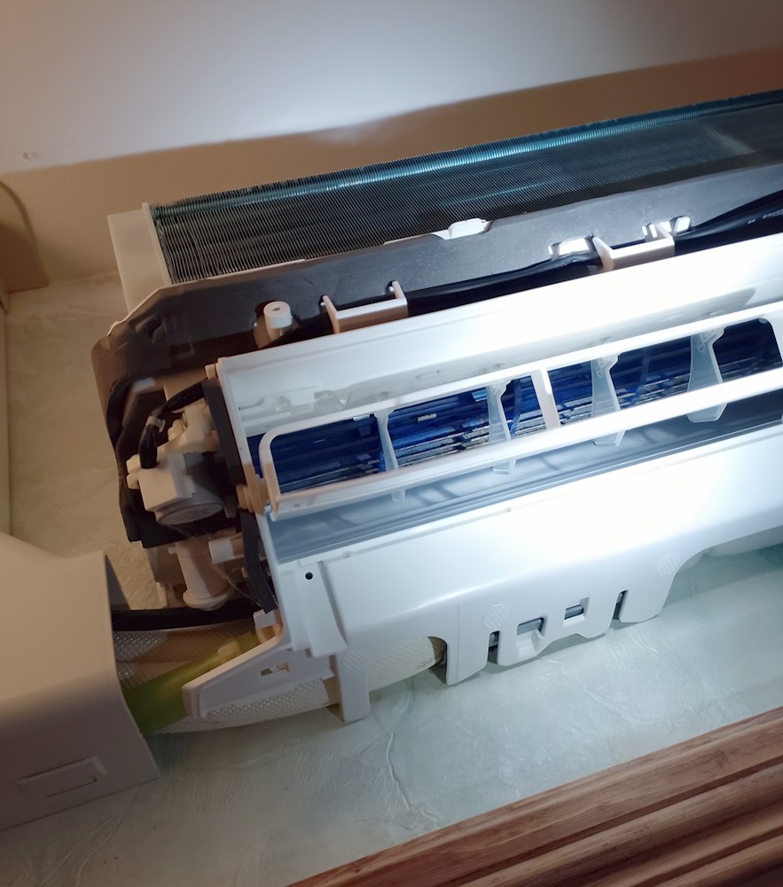 En revanche il y a une partie difficile d'accès, même en démontant le capot des unités intérieures : ce sont les ailettes du ventilateur tangentiel. Il faut y aller avec un pinceau ou une brosse à dents mais c'est très fastidieux.