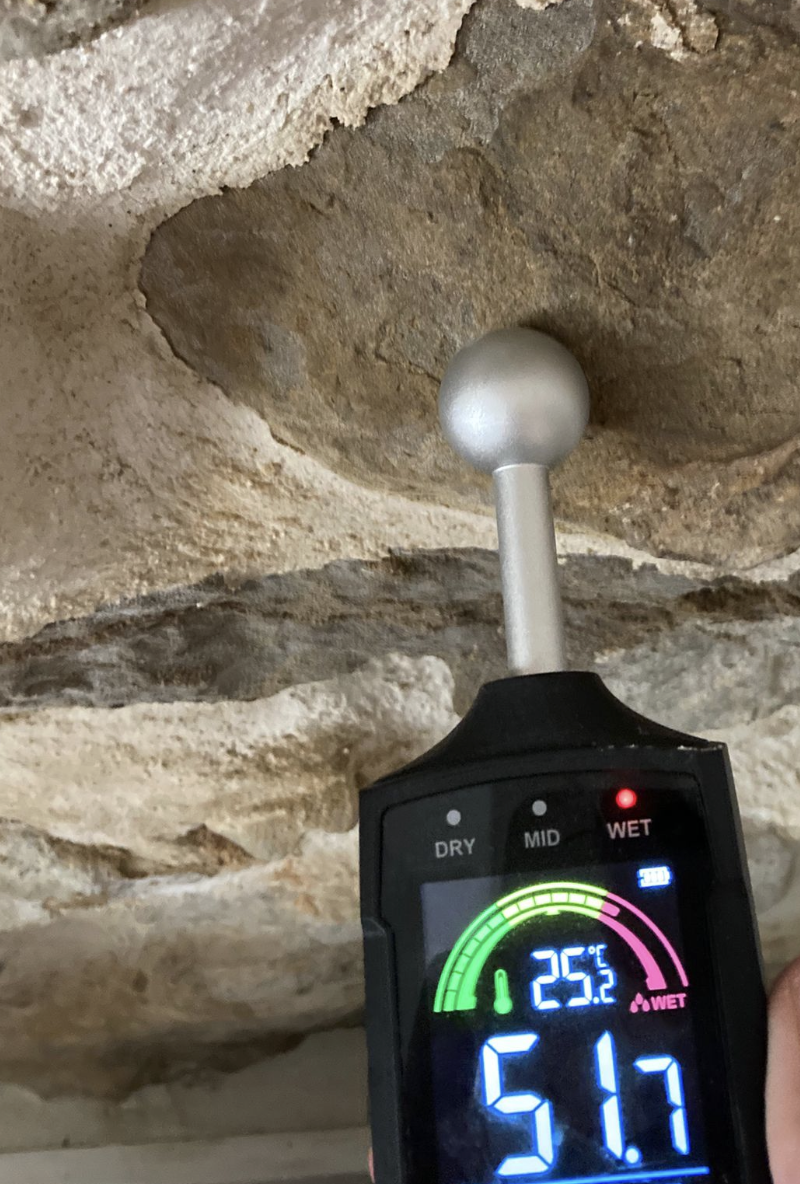Bref, la situation n'est pas compliquée, nous avons une vieille maison (1880 environ) en pierre, certains murs ont les pierres apparentes et nous avons des remontées capillaires jusqu'à environ 1 mètre du sol sur le mur mitoyen avec notre voisin. Je pense qu'il y en a tout autant sur le mur non mitoyen mais sur celui ci celà est moins visible. Certaines pierres apparentes s'effritent, les parties enduites aussi, du salpètre est présent... Le problème a l'air de ne pas être situé que sur notre maison car nous avons testé avec notre joli petit hygromètre est le taux s'envole à +50% chez les voisins...
