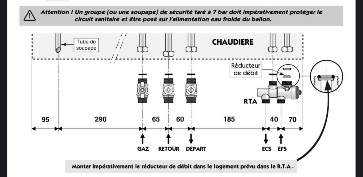 Pensant que ça venait du groupe de sécurité je l’ai remplacé mais ça n’a rien changé, ça continue de couler même si je ferme le robinet du groupe. L’eau qui coule est chaude donc elle provient bien de la chaudière mais pourtant elle ne semble pas être en surpression si je me fie aux voyants. À moins qu’il y ait une autre arrivée d’eau froide?