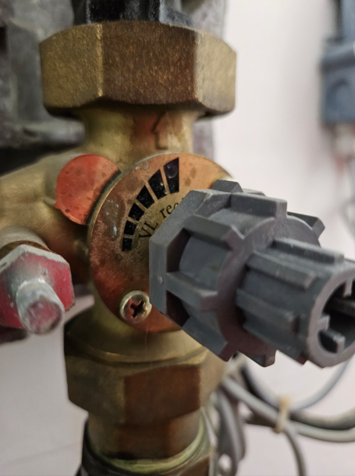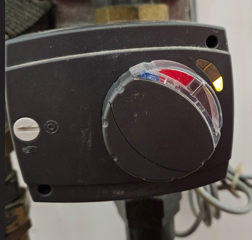 La vanne 3 voies est en décalage d'environ 45° vers la droite par rapport à sa position "préréglée" d'origine, et comme je l'ai dit, une vis centrale est dans le vide. Tout ça a été bricolé par un plombier qui m'a été envoyé pour le dépanner après que la carte mère de la PAC a grillé, suite à une inversion de phases sur le réseau. Le mec ne nous avait pas paru, à mon fils et moi, le couteau le plus aiguisé du tiroir. Je pense donc que la vanne a été remise en place à la n'importe quoi. Je vais poster une photo de la vanne avec son montage actuel.