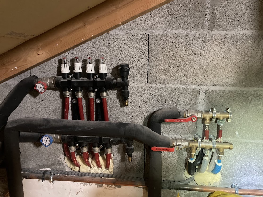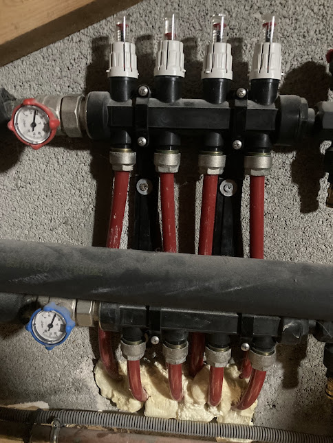 Pour l'étage, la pompe faisait circuler l'eau, normalement (bruit et visualisation collecteur) mais ) faible température! 18-20°C en entrée de l'étage, 22 en retour de la dalle.