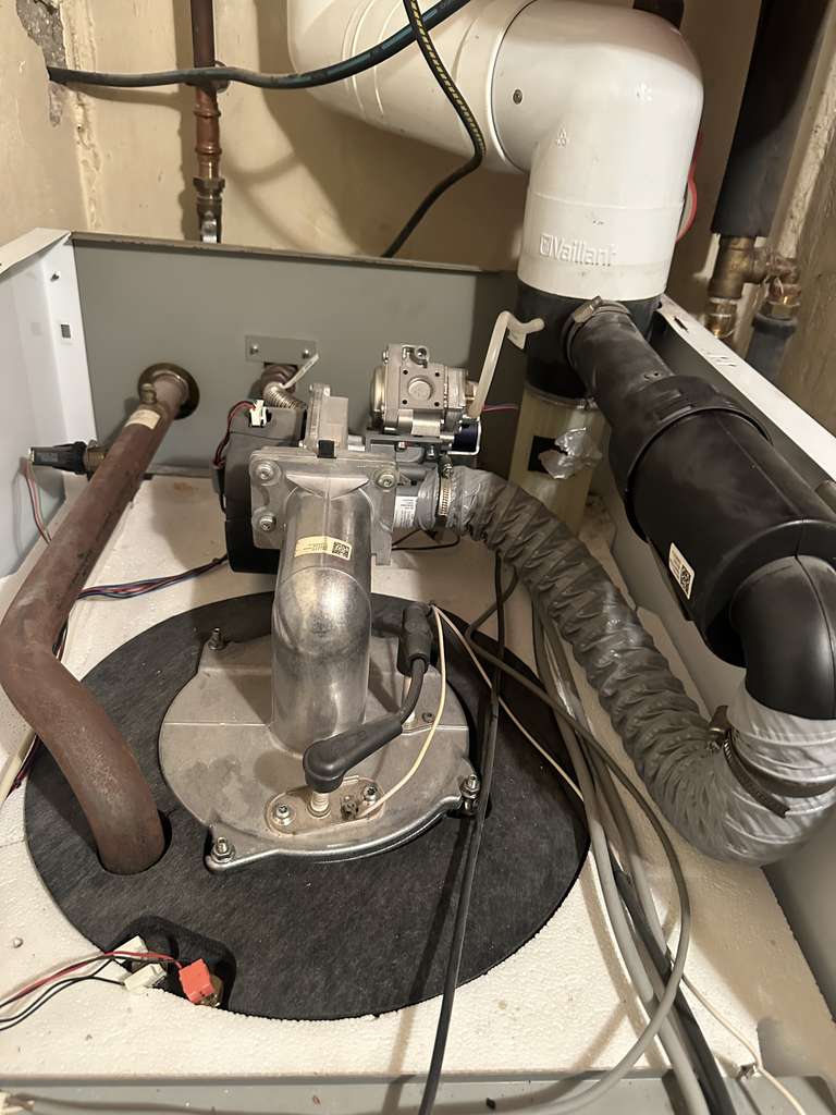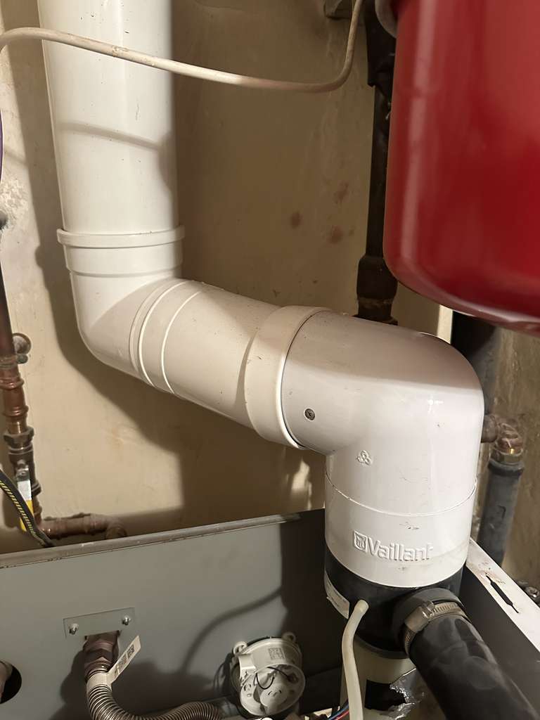 J'ai un souci sur ma vaillant Ecovit VKK 356/5 condensation, la prise de combustion est absente et lorsque le technicien détaché par GRDF est passé pour le changement de gaz, il n'a évidemment pas voulu prendre la combustion par le trou à l'époque fait par l'installateur pro (trou visible sur la photos rebouché par un scotch, par le même installateur qui prenait la combustion par ce trou...), il m'a expliqué que son cahier des charges lui interdisait de procéder ainsi (ce que je peux comprendre...), je désire donc ajouter cette prise de combustion, sauf que sur ce modèle je ne sais pas ou l'installer et comment me le procurer. De ce que j'ai pu comprendre, il se trouve en règle générale sur la ventouse, si vous avez un idée, une piste, je suis preneur, car évidemment GRDF menace désormais de couper le gaz... Je mets des photos pour que ce soit plus explicite, merci d'avance.