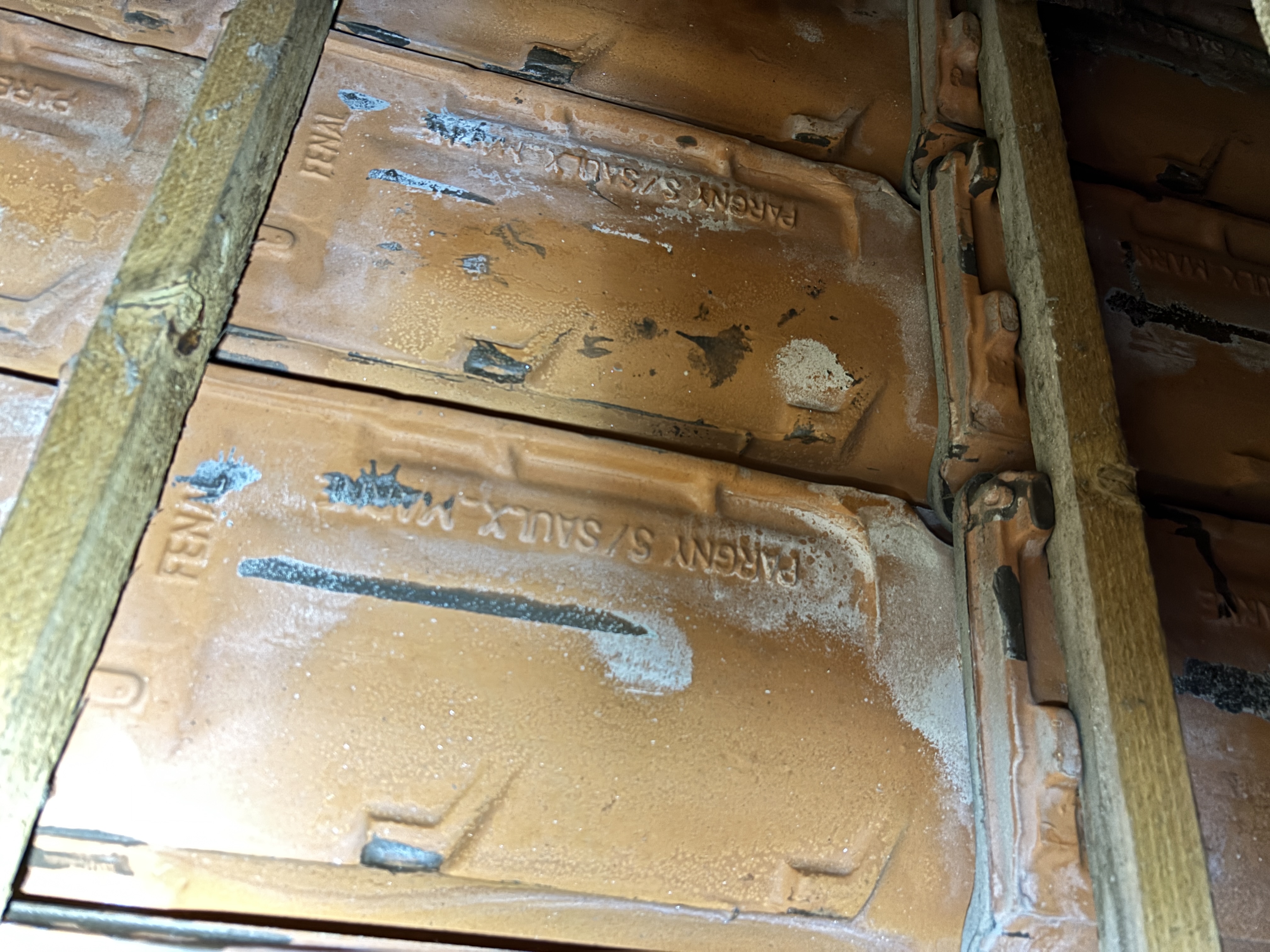 En cours d'achat sur une maison mais j'ai un doute sur les tuiles due à ces traces blanches sous les tuiles