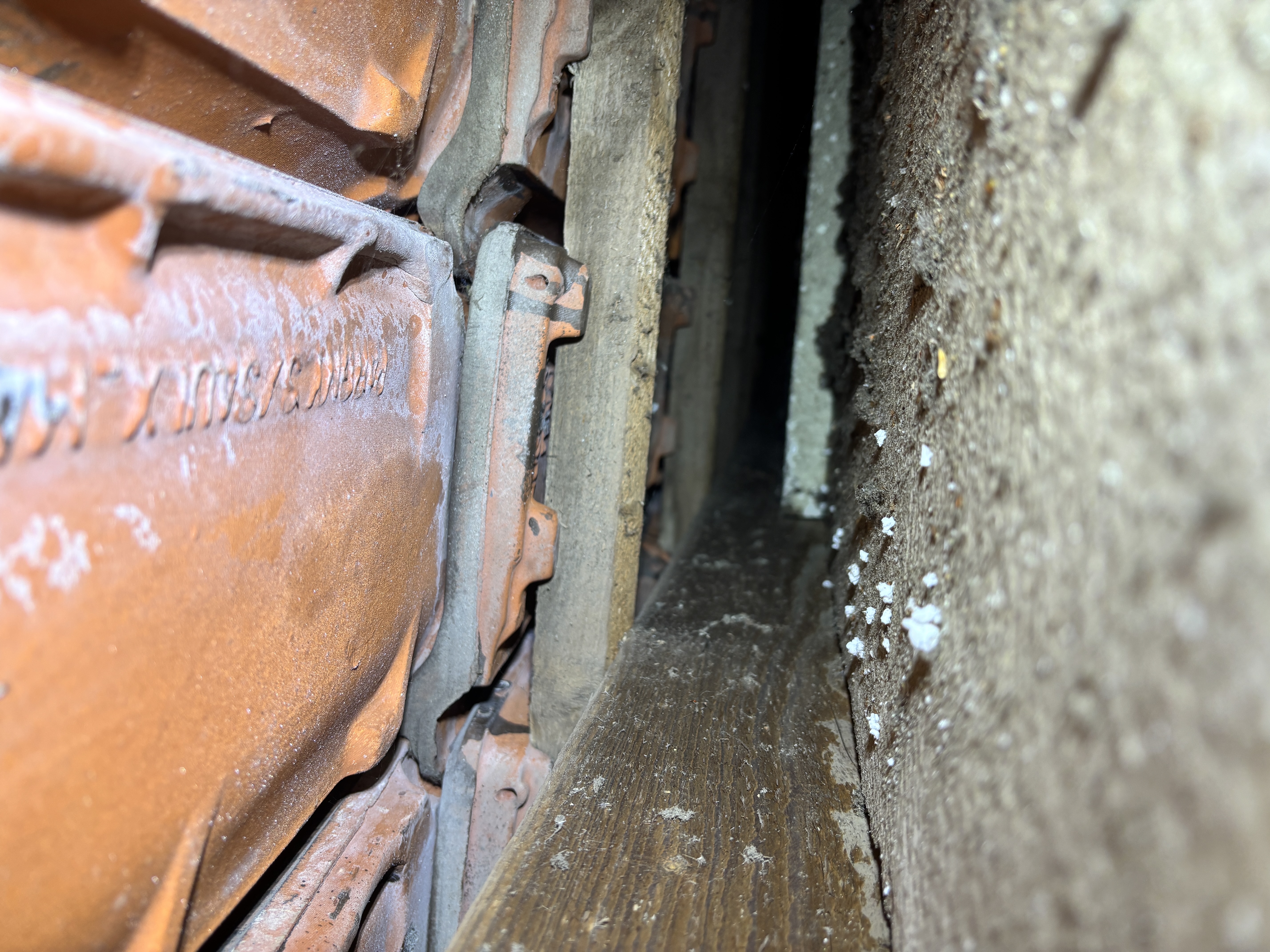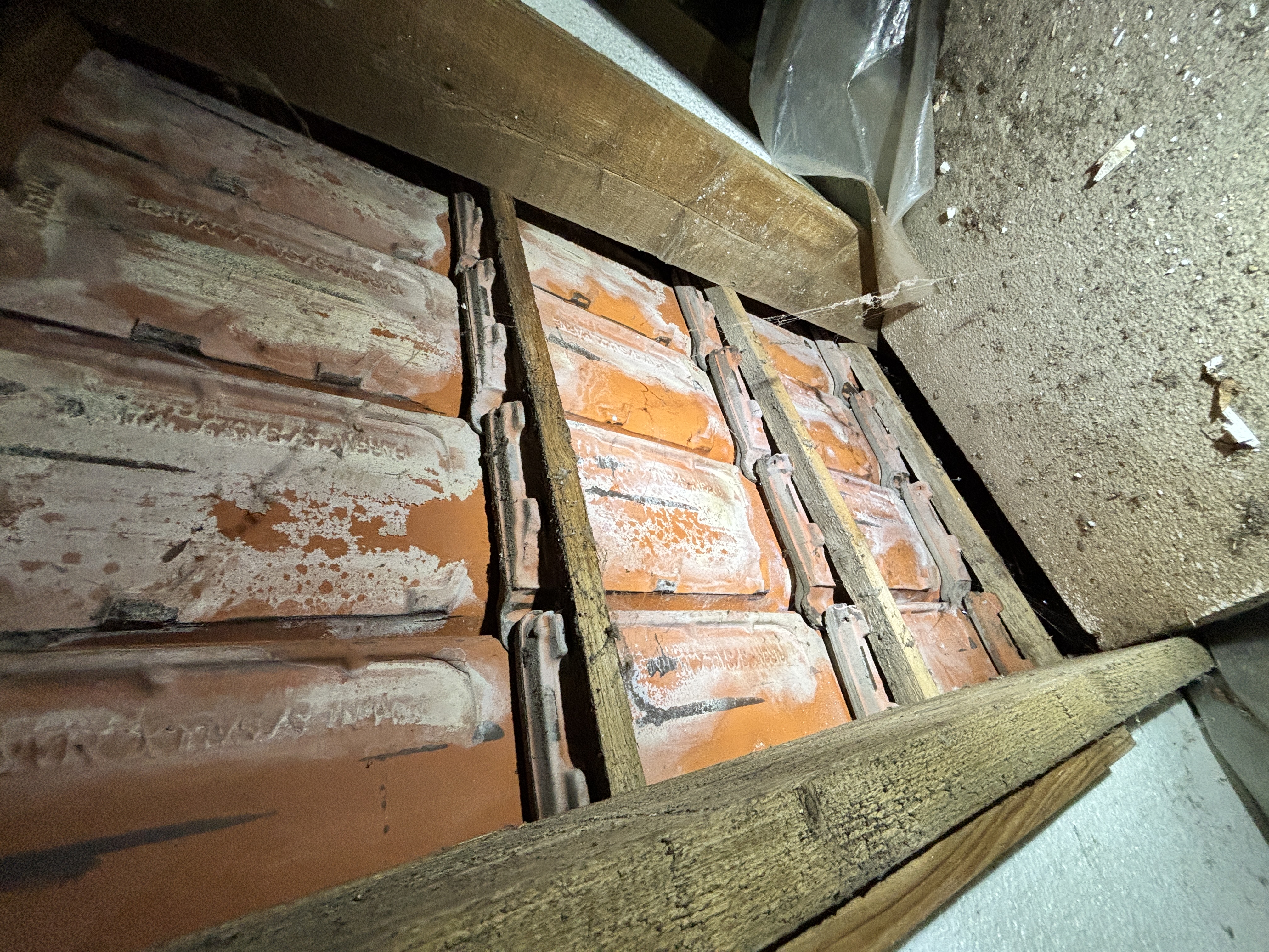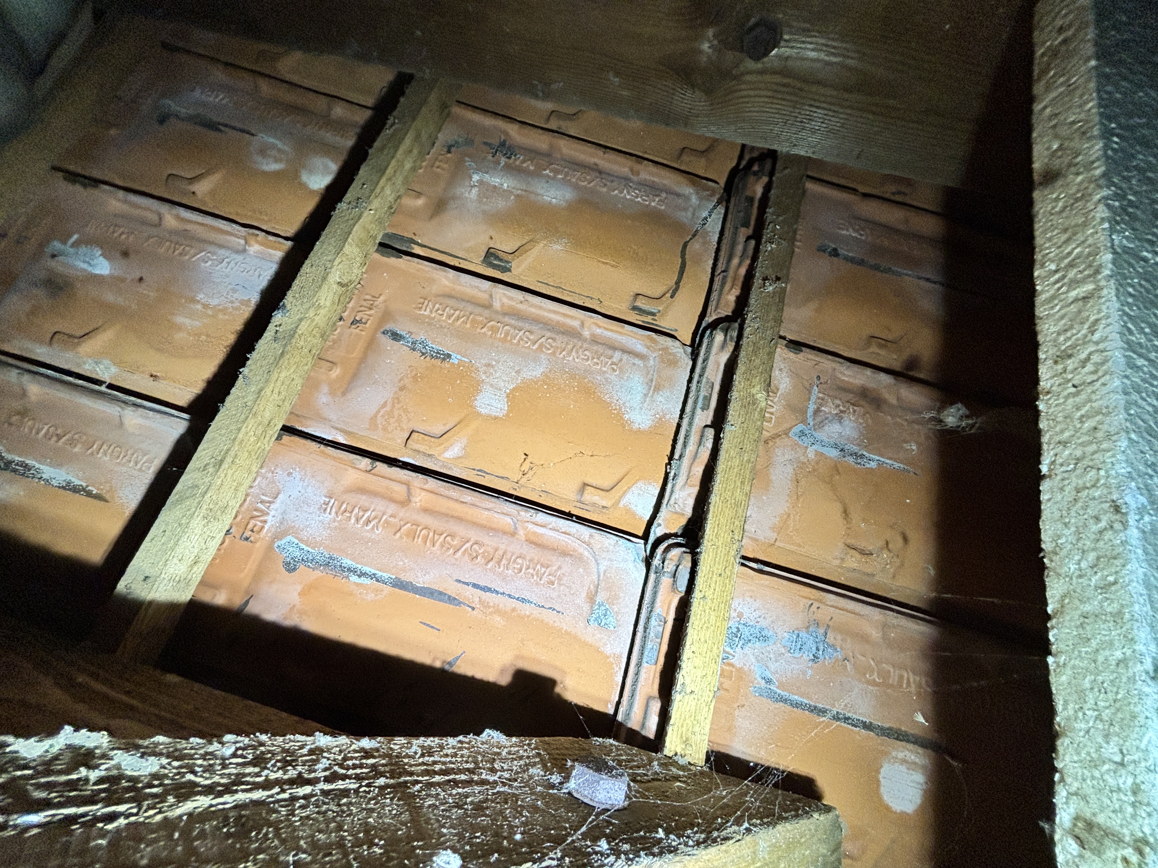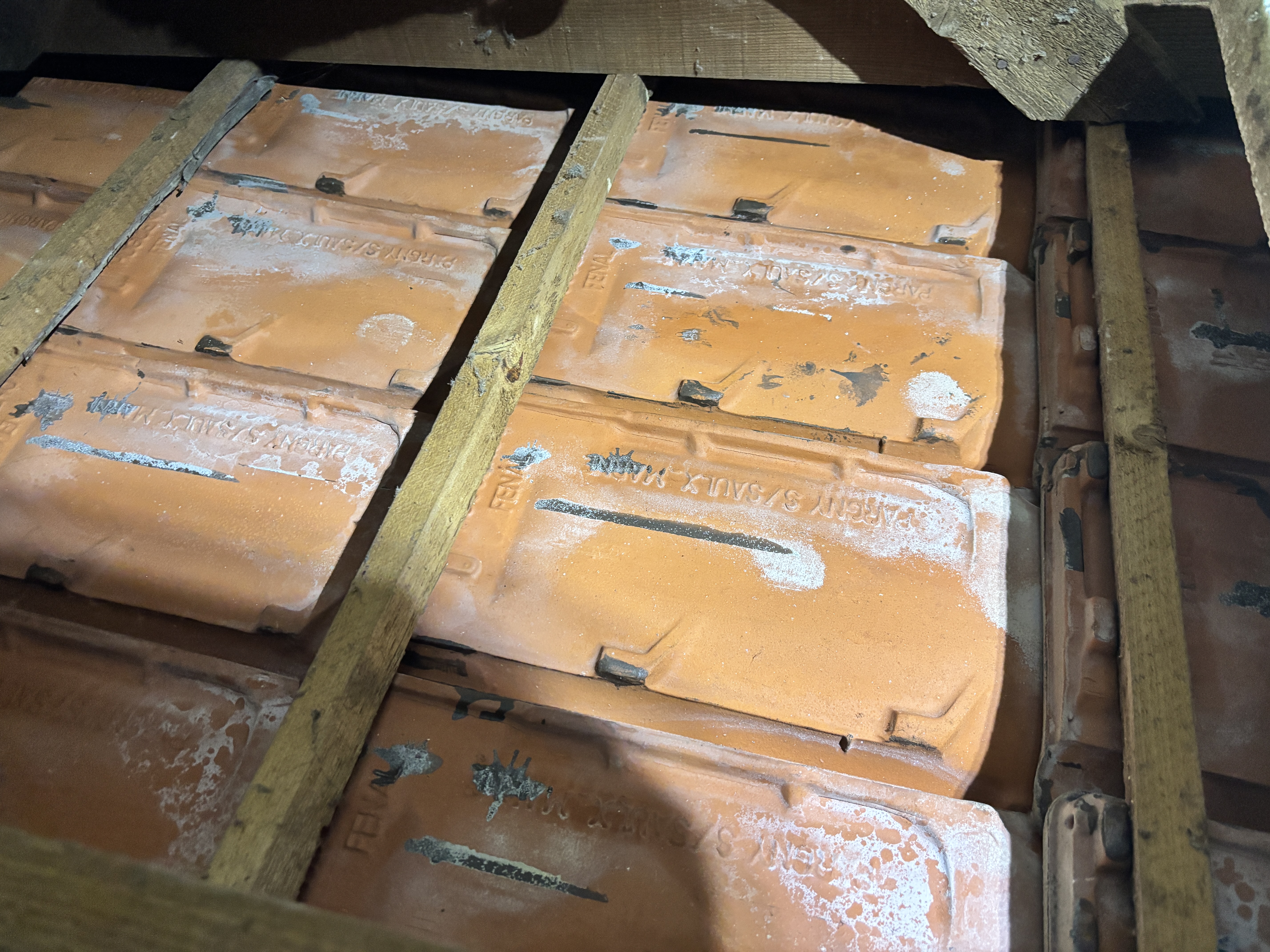 il y a peut-être existé une tentative d'isolation par des plaques de polystyrène placées juste au contact du plan des tuiles.... donc mal ventilées?