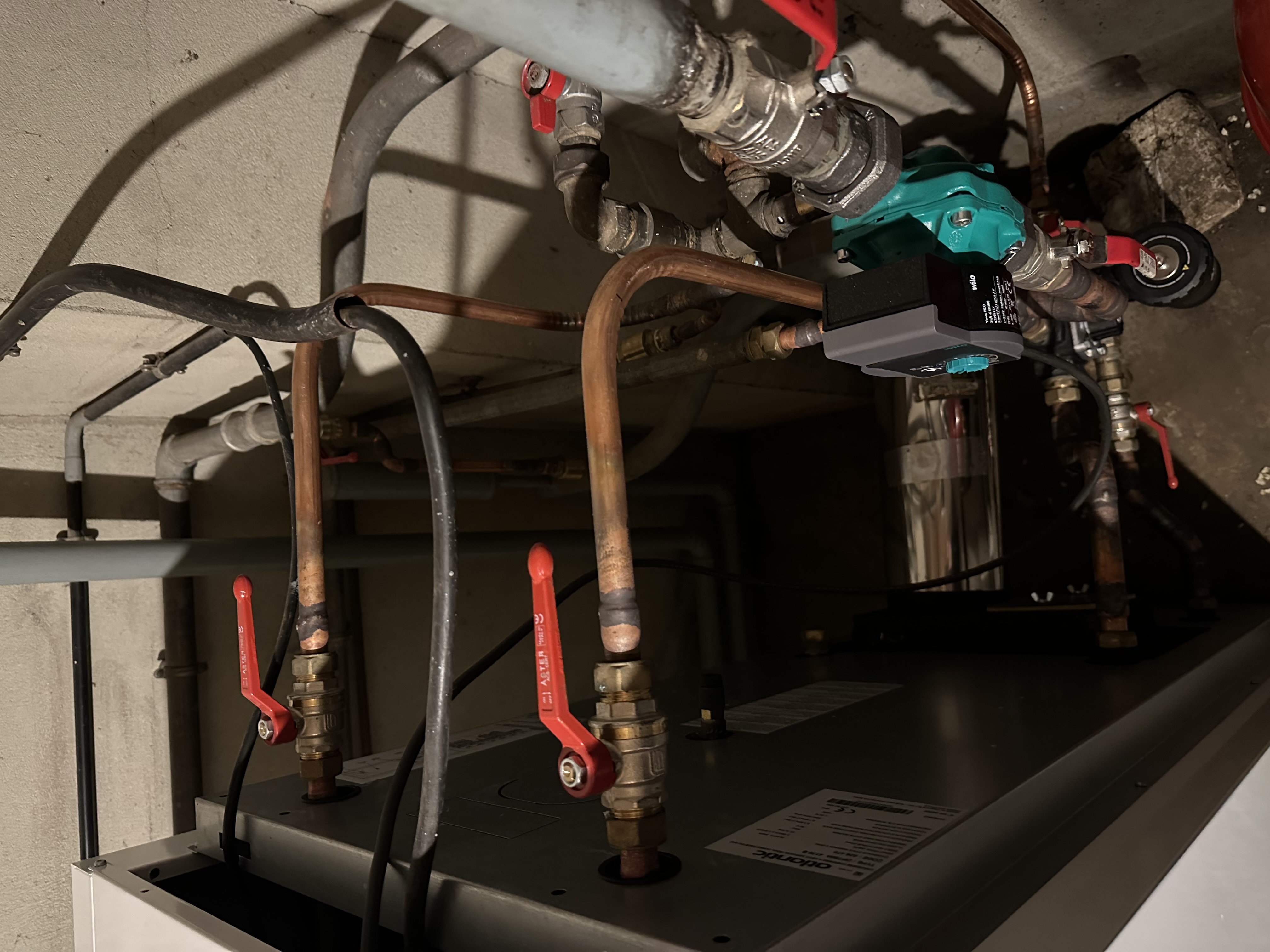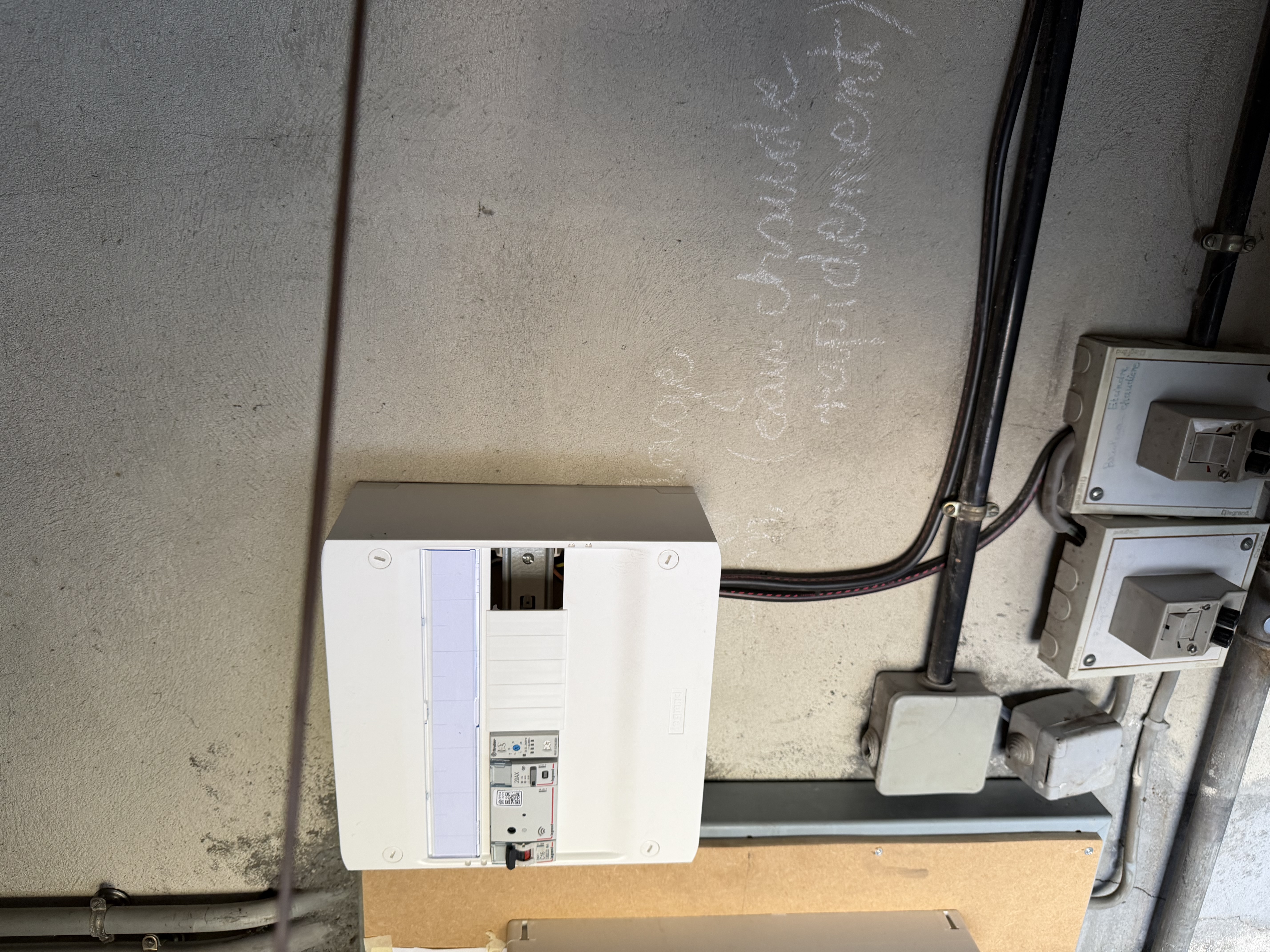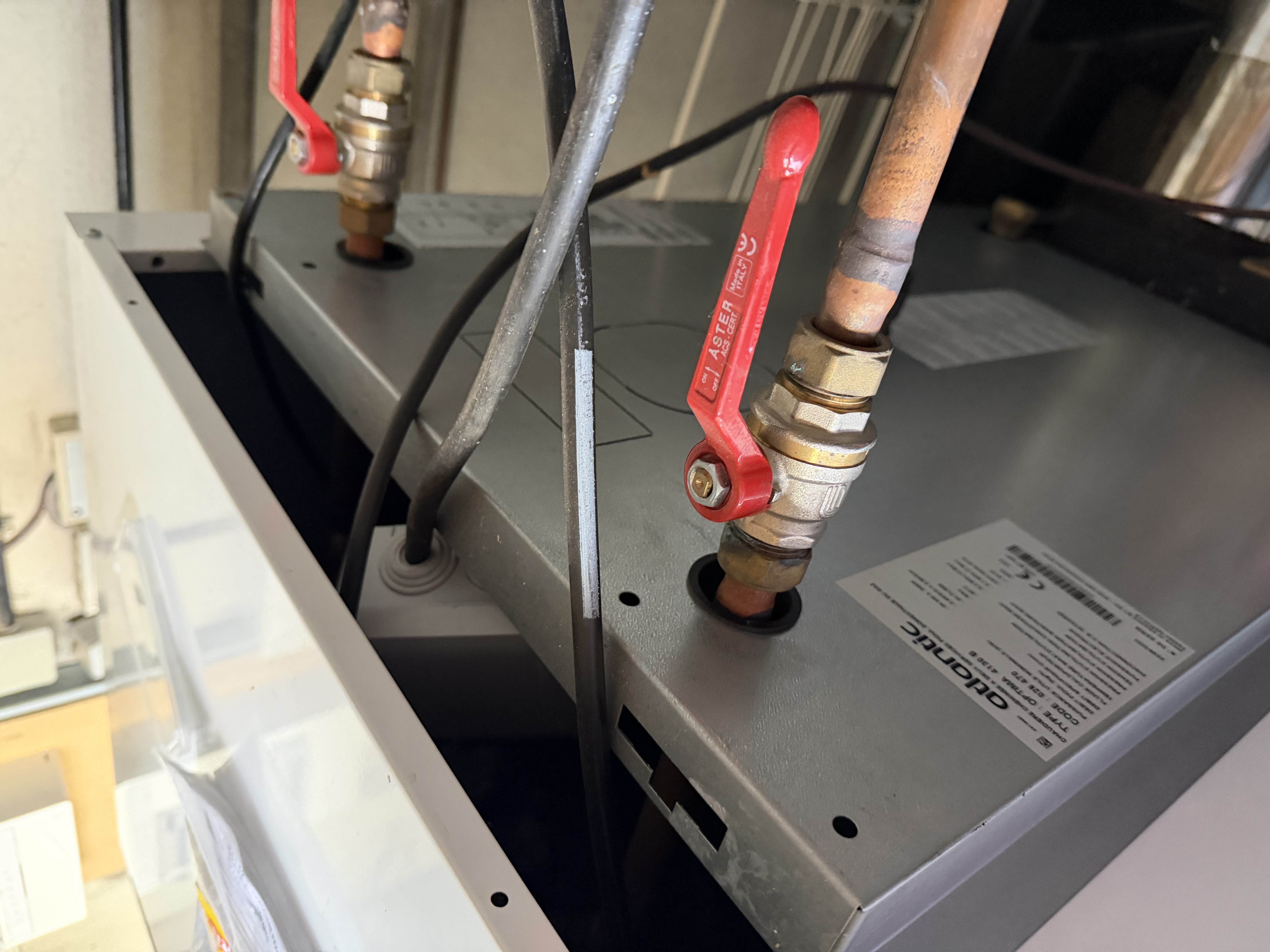 Vous trouverez ci joint une photo de l’installation de ma chaudière. Au mur le tableau avec le dijoncteur concerne la désactivation de l’ecs.