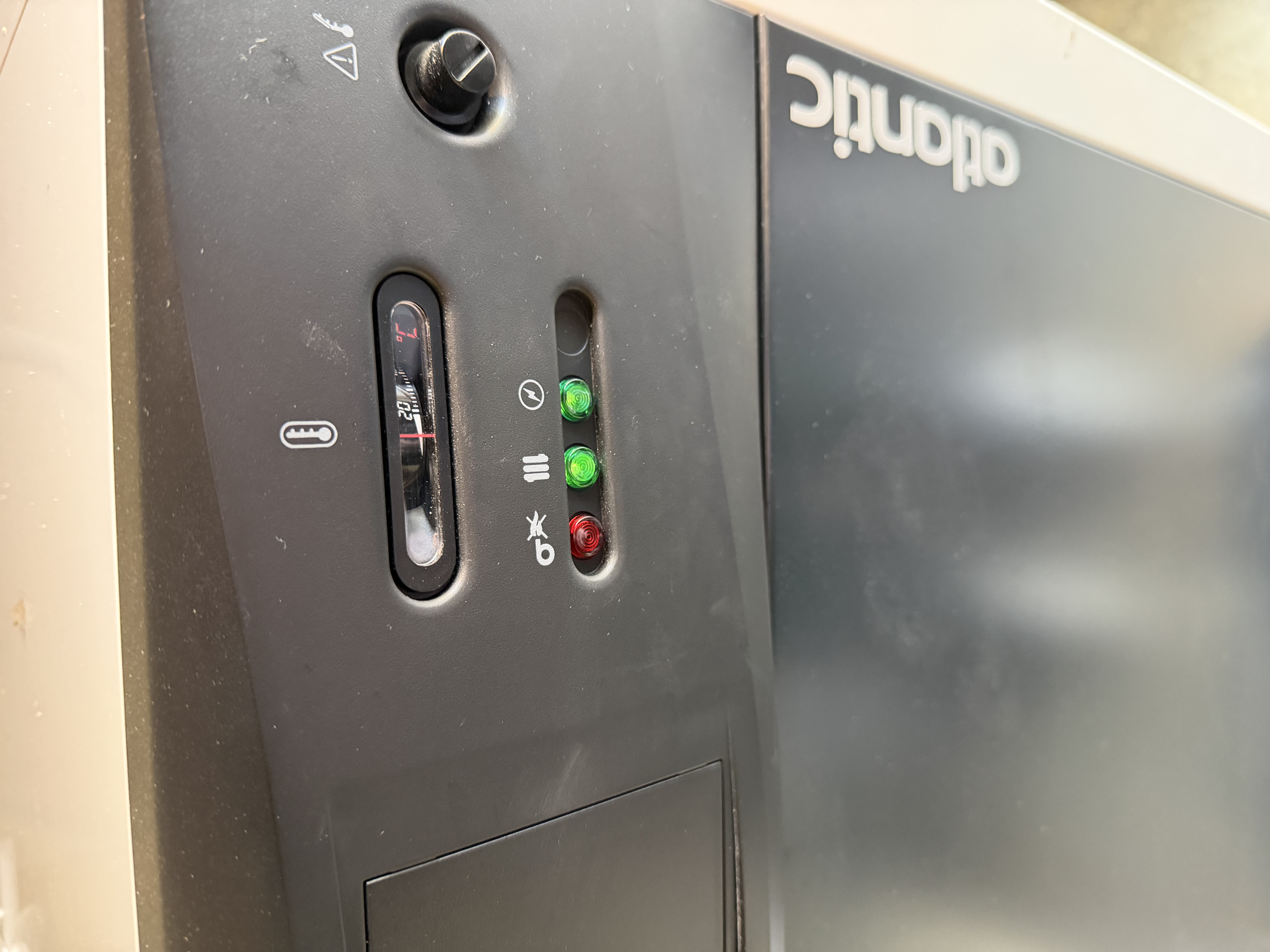 Ci joint une photo du devant de la chaudière avec la température au plus bas lorsque le thermostat est eteint ainsi que l’ecs.