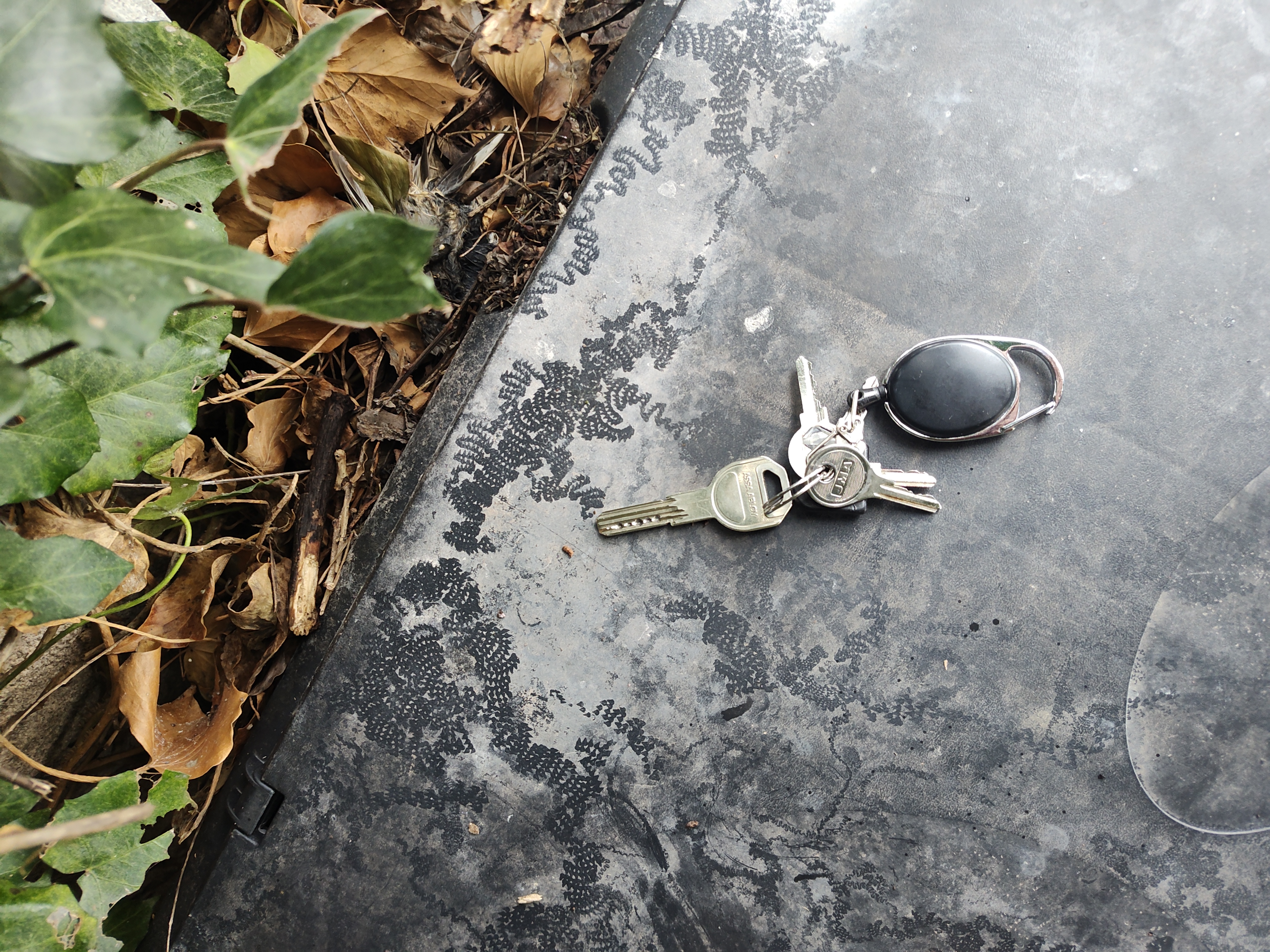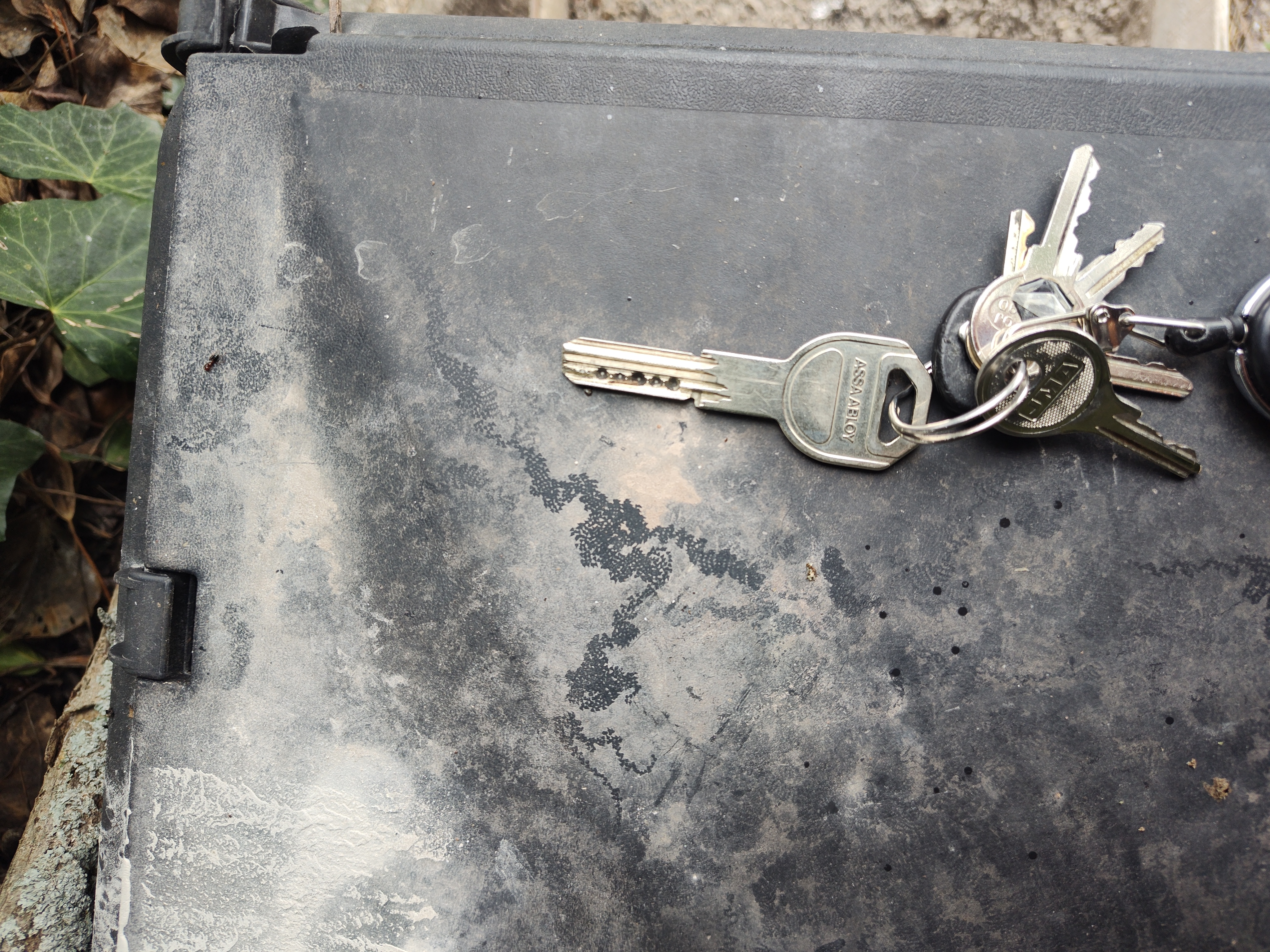 Mes clés pour l'échelle, quelque chose a méticuleusement parcouru la surface en faisant des triangles de "propre", et en faisant des allers retours à la façon d'un tracteur qui laboure ou ailleurs, façon méandres de rivière.