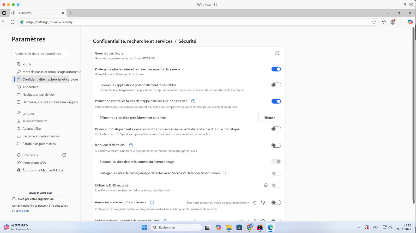 Le navigateur proposé est Edge et la navigation internet fonctionne très bien.