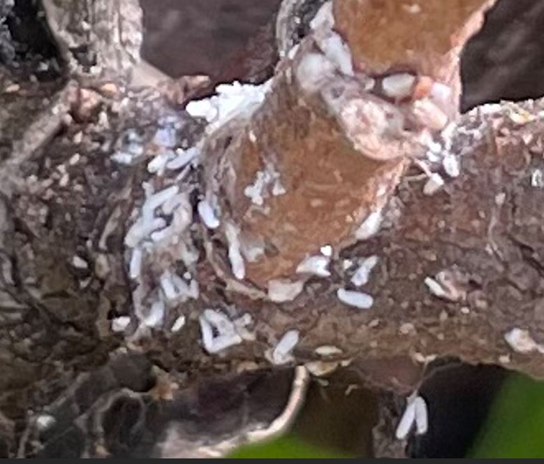 Par contre, je mets aussi à jour des "trucs" blancs. Je ne sais pas ce que c'est ... Peut-être cochenilles ou œufs de Kekchose...