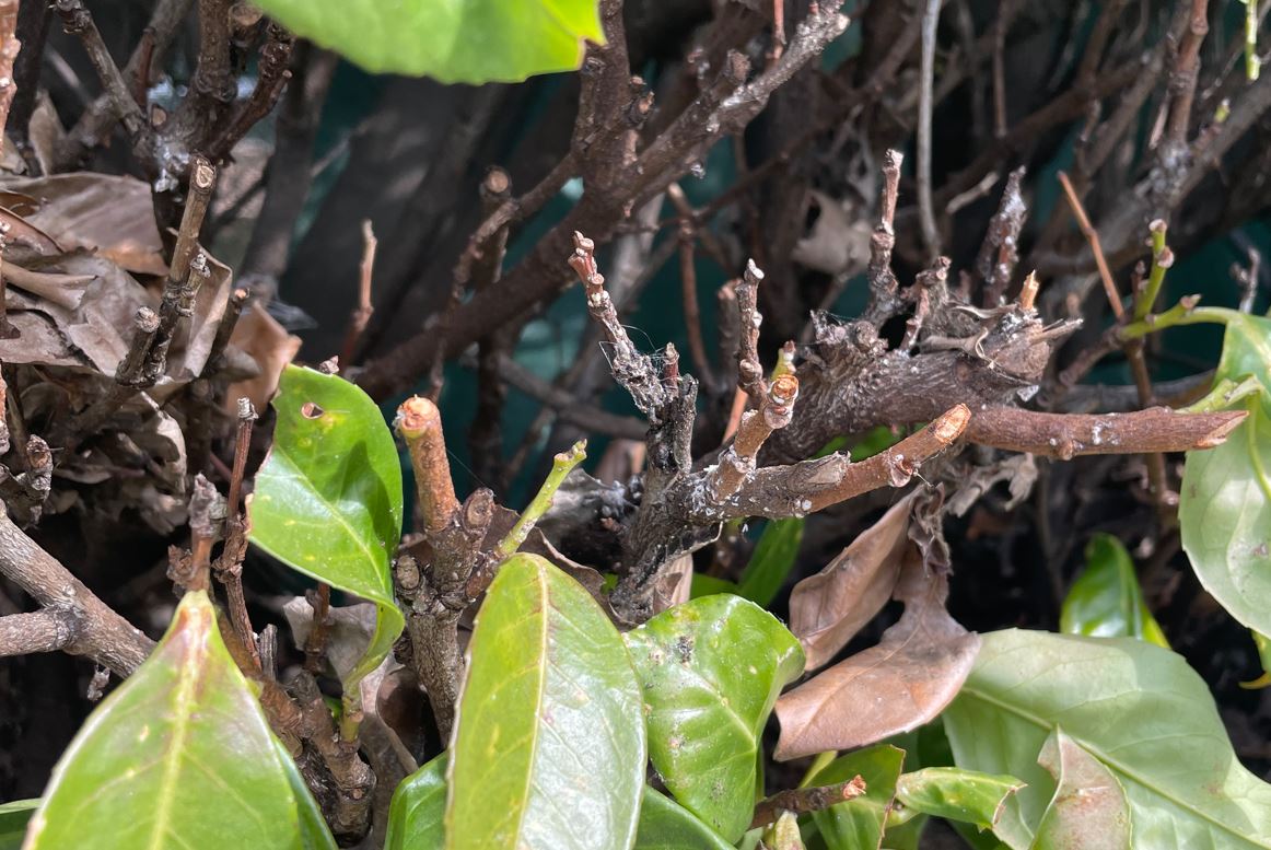Mes voisins ont ma même chose. On voit l’épidémie progresser et les pieds de Laurier sèche à leur tour.