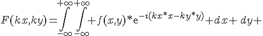 F(kx,ky)=Int(Int( f(x,y)*(exp(-i(kx*x-ky*y))) *dx*dy ))