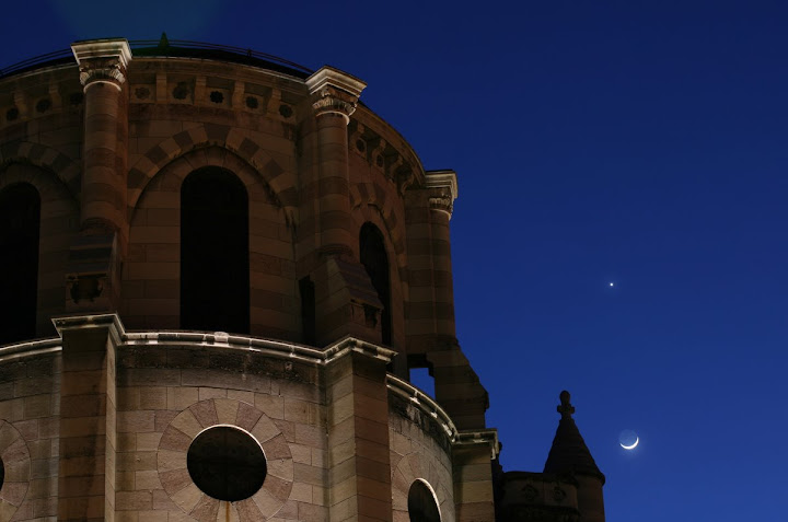 Moi aussi j ai un cliché a vous proposer , la conjonction de ce soir avec le Canon EOS 350D avec objectif 75-300 . 1 pose de 8s.