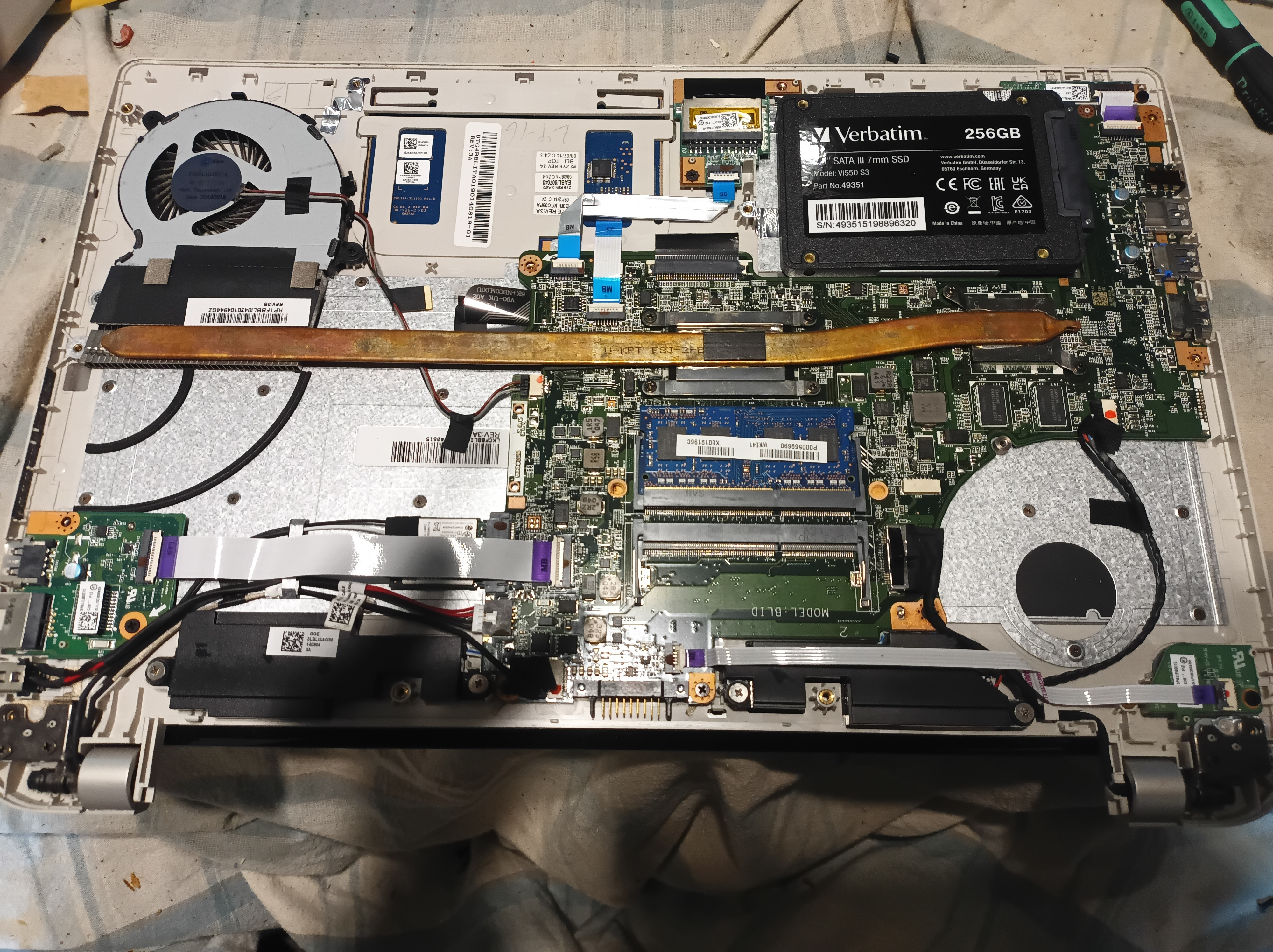 Appui sur la touche de demarrage le clavier s'allume , le ventilateur tourne quelques secondes et s'éteint.