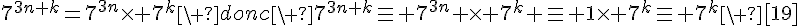 3) Quels sont les restes possibles dans la division euclidienne de 7^n par 19 ?