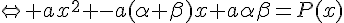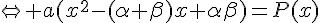 Soit P(x) = ax2 + bx + c, a ≠ 0. Montrer que si α et β sont les racines de P, alors α β = c/a et α + β = − b/a. Montrer, réciproquement, que si α β = c/a et α + β = − b/a, alors α et β sont les racines de P.