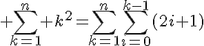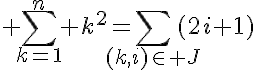 On sait que la somme des n premiers nombres naturles k à la puissance 2 (le premier k étant 1) s'écrit selon la règle :